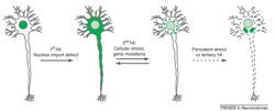 Frontotemporal Lobar Degeneration (FTLD) is a fatal neurodegenerative disorder for which no cure is available. Although it is a rare disorder FTLD is the second most common form of dementia below the age of 65 after Alzheimer’s disease. FTLD is a disease syndrome, which overlaps with Amyotrophic Lateral Sclerosis (ALS). In our lab we are specifically interested in RNA binding proteins, which are cleared from the nucleus and deposited in the cytsosol. These proteins include FUS, TDP-43 and hnRNPA1, A2 and A3. We are also investigating other risk factors such Progranulin and TMEM106B, which apparently affect lysosomal function. Two hit Figure aus dem Dormann Review und lysosmal IHC